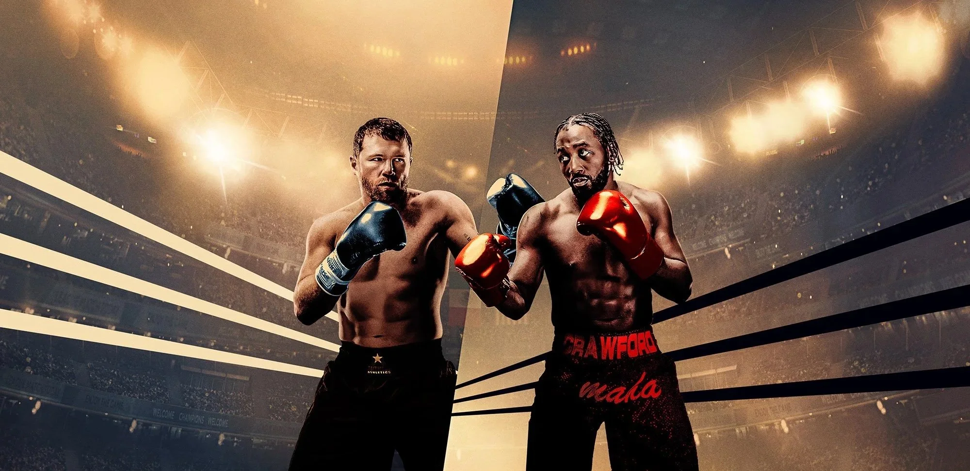 Approach: For a match as momentous as Canelo vs Crawford, we brought the boxing ring into blockbuster-size scope to elevate the sport for a series of art that unfolded on platform as the event came nearer.