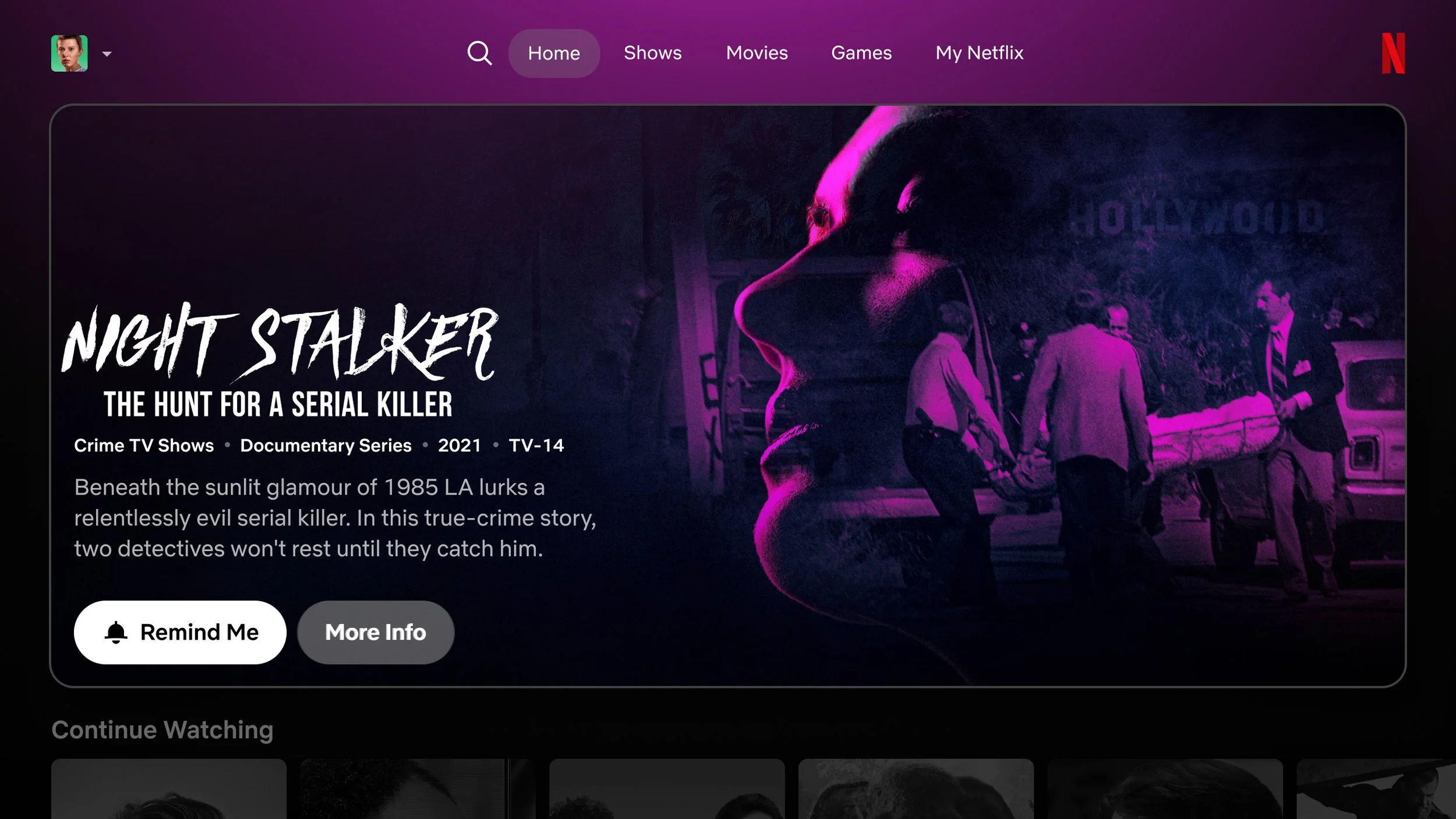 Approach: For the launch of Night Stalker, we captured the chilling tension audiences expect from true crime while incorporating the duality of a sun-soaked Los Angeles by day and the unpredictability of 80s neon by night.